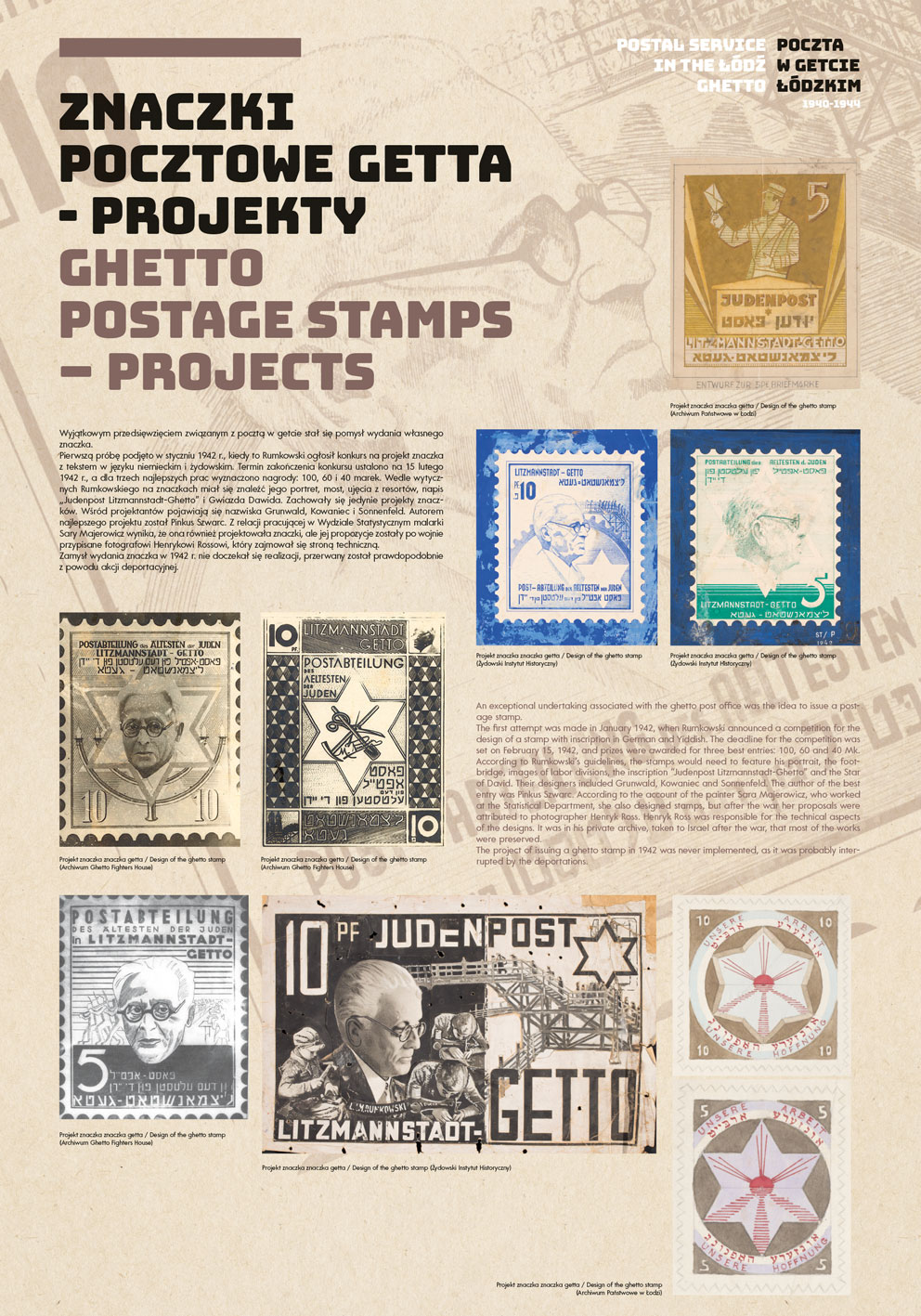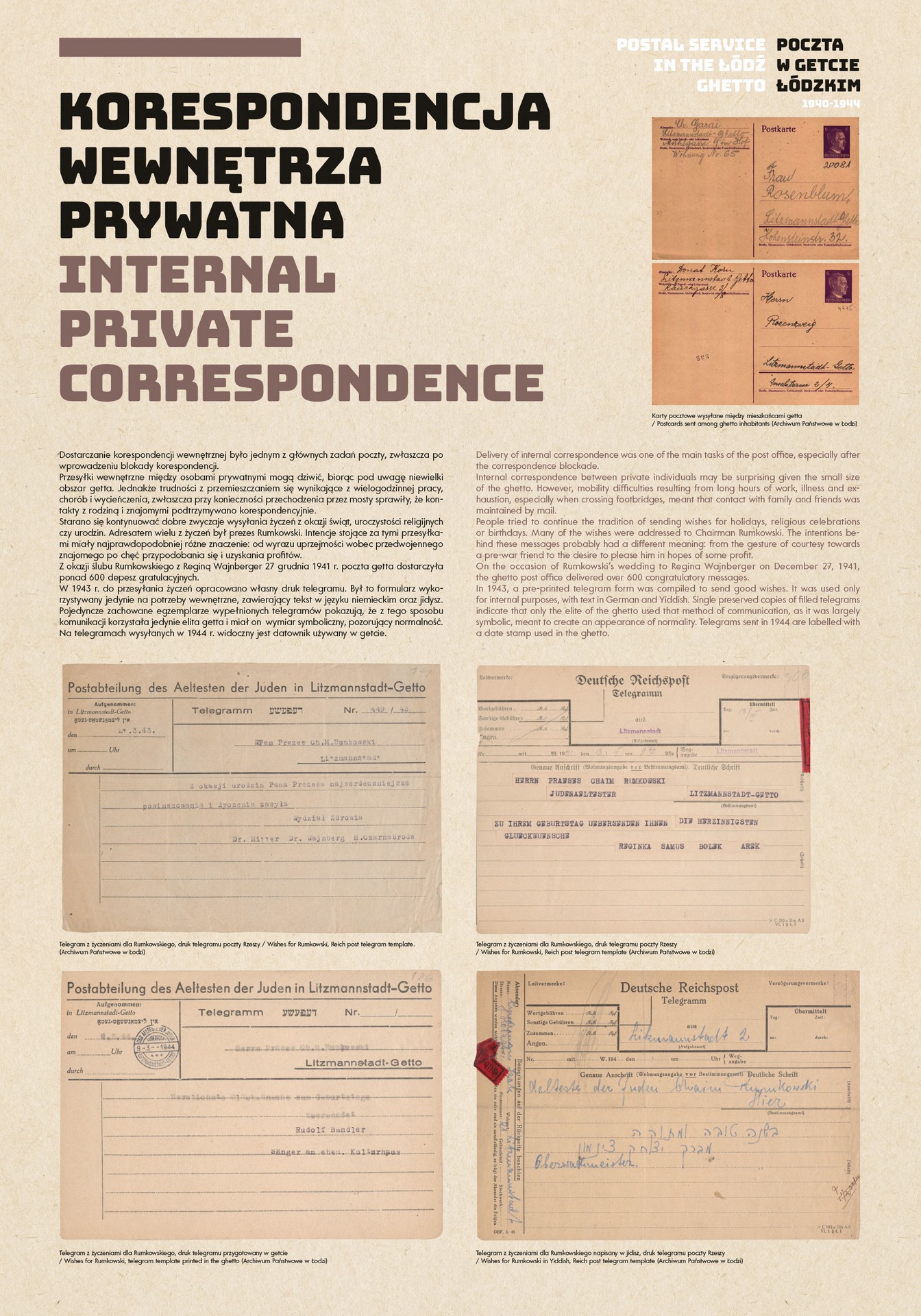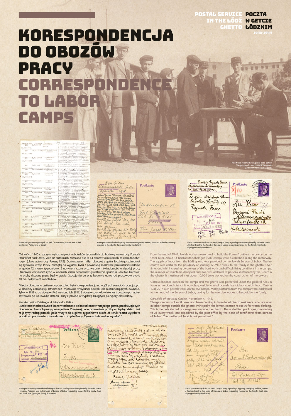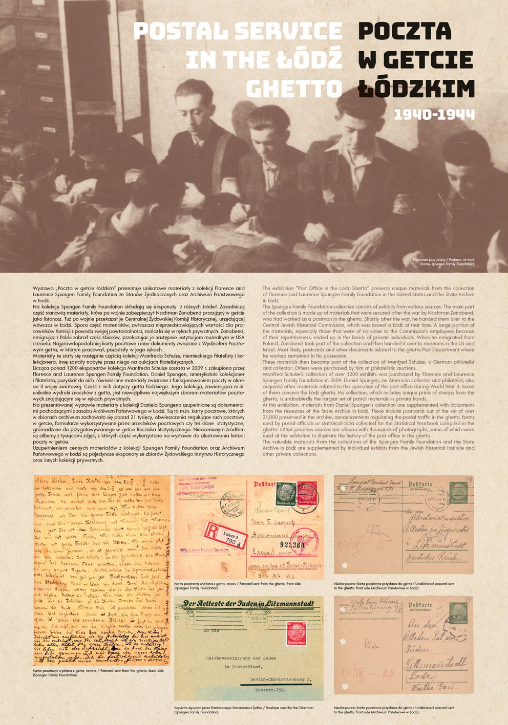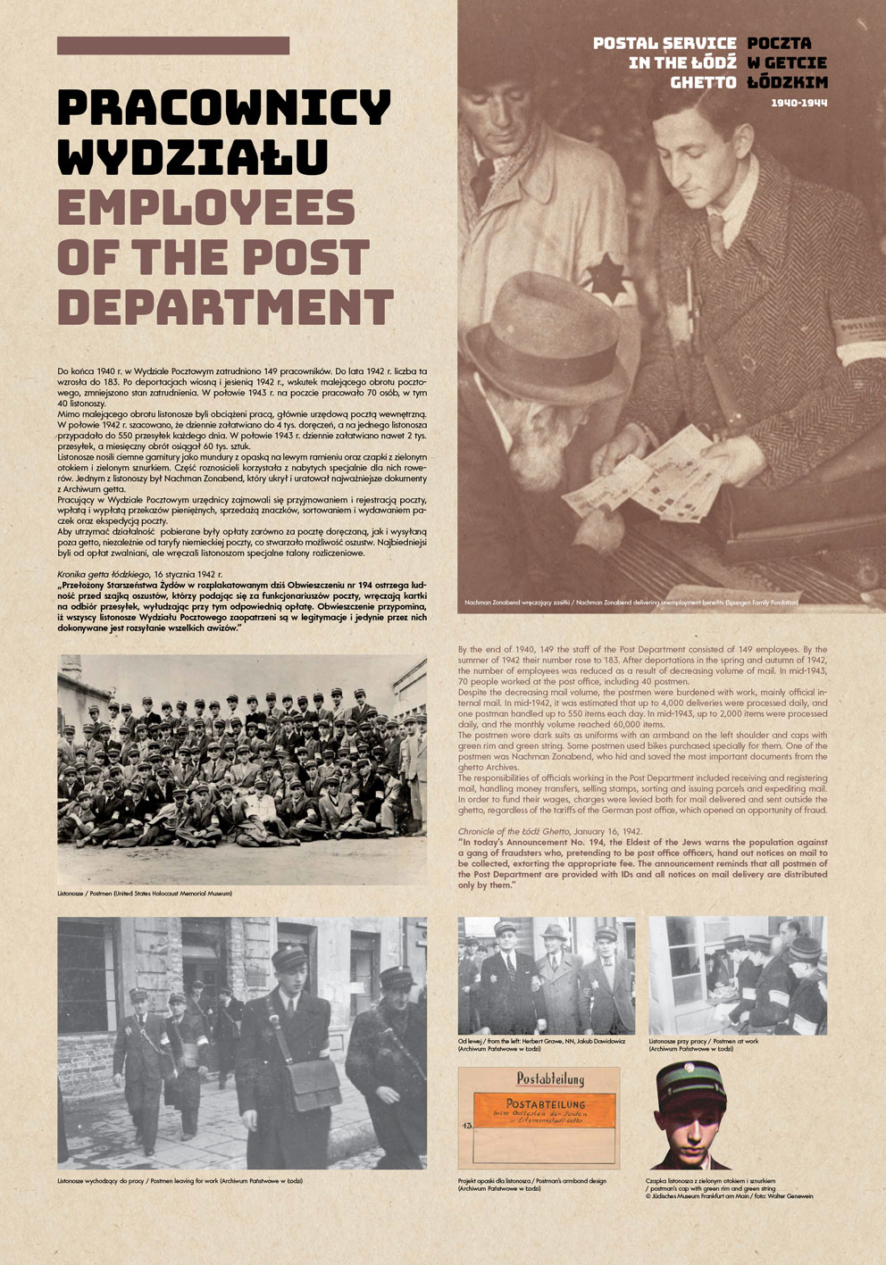 The authors of the project were guided by the idea of using the most representative documents and photographs to show the functioning of the post office in the Lodz Ghetto, while at the same time illuminating some aspects of the daily life of the Jewish quarter in occupied Lodz.
