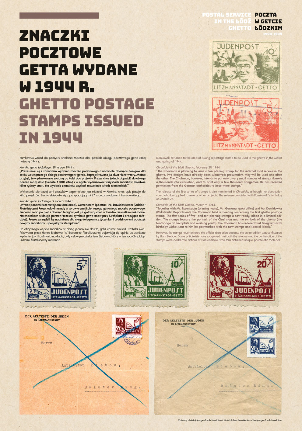 Manfred Schulze’s collection of over 1200 exhibits was purchased by Florence and Laurence Spungen Family Foundation in 2009. Daniel Spungen, an American collector and philatelist, has expanded the collection with more materials related to the operation of the postal service during World War II. Some of them concern the Łódź ghetto. His collection, which includes unique prints of stamps from the ghetto, is undoubtedly the largest set of postal materials in private hands.