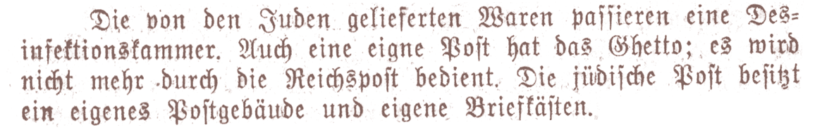”The ghetto has an internal post office; it [ghetto] is not operated by the Reich post office.