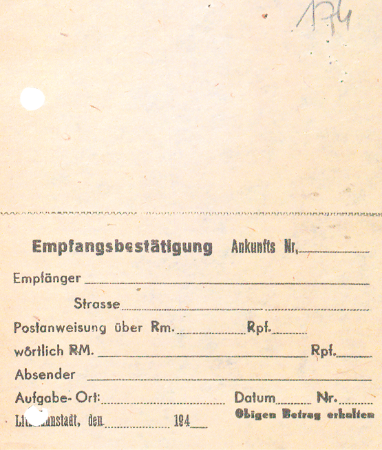 A shortage of petty cash led the Postal Department to obtain permission in May 1942 to print vouchers with a denomination of 10 fenigs.
